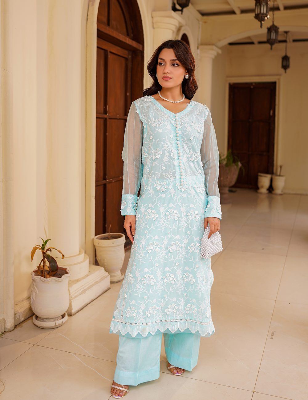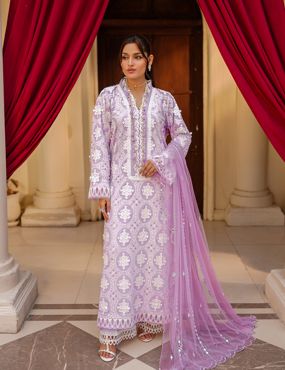 $75.00$75.00/Description: Embrace pure elegance with this chikankari shirt, paired with a pure lawn trouser and a delicate net dupatta. A timeless trio for an effortlessly graceful look!Shirt:...
