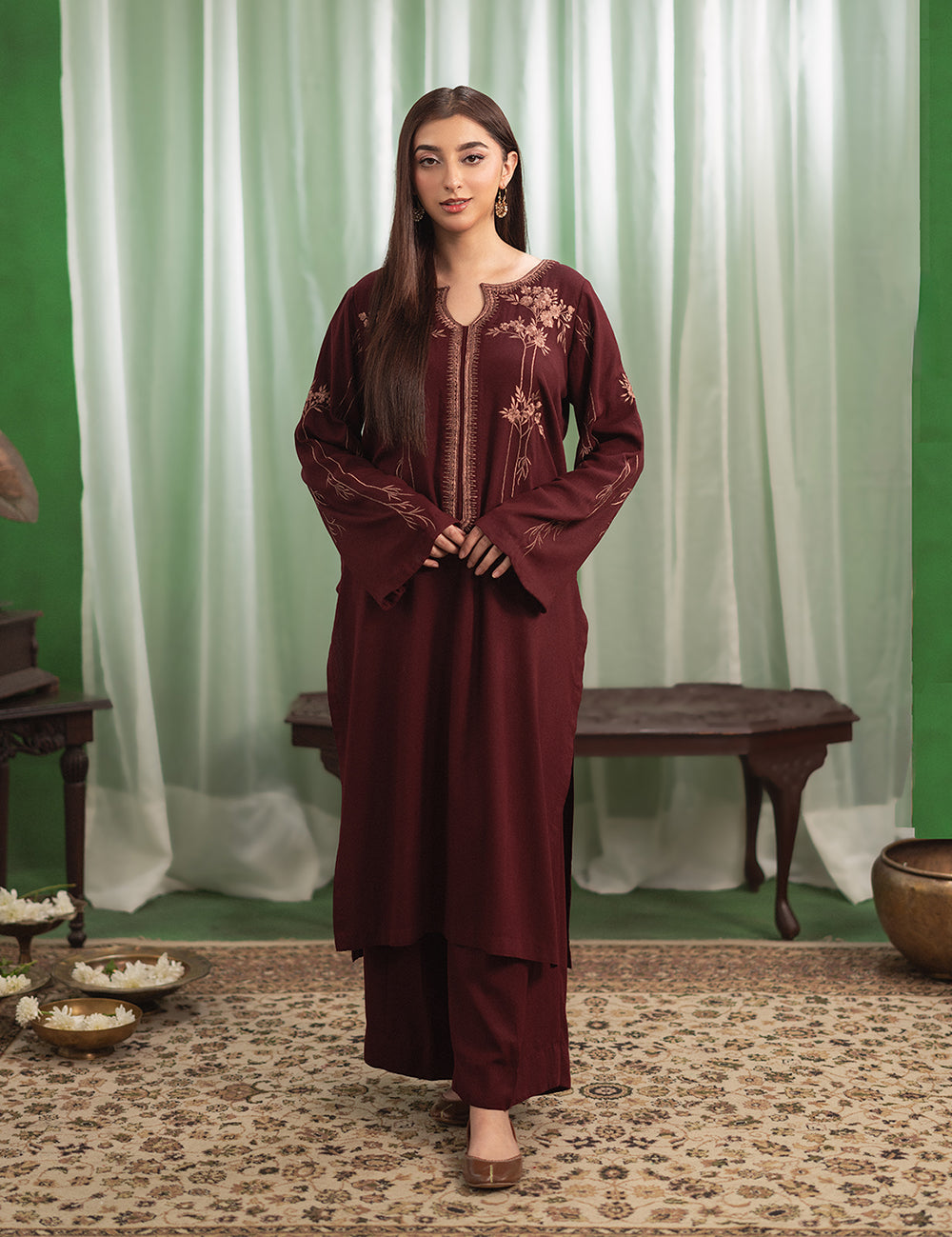 $90.00$90.00/Description: Tailored to perfection, this maroon karandi set blends ease with understated elegance. A classic look that never goes out of style — perfect for every...
