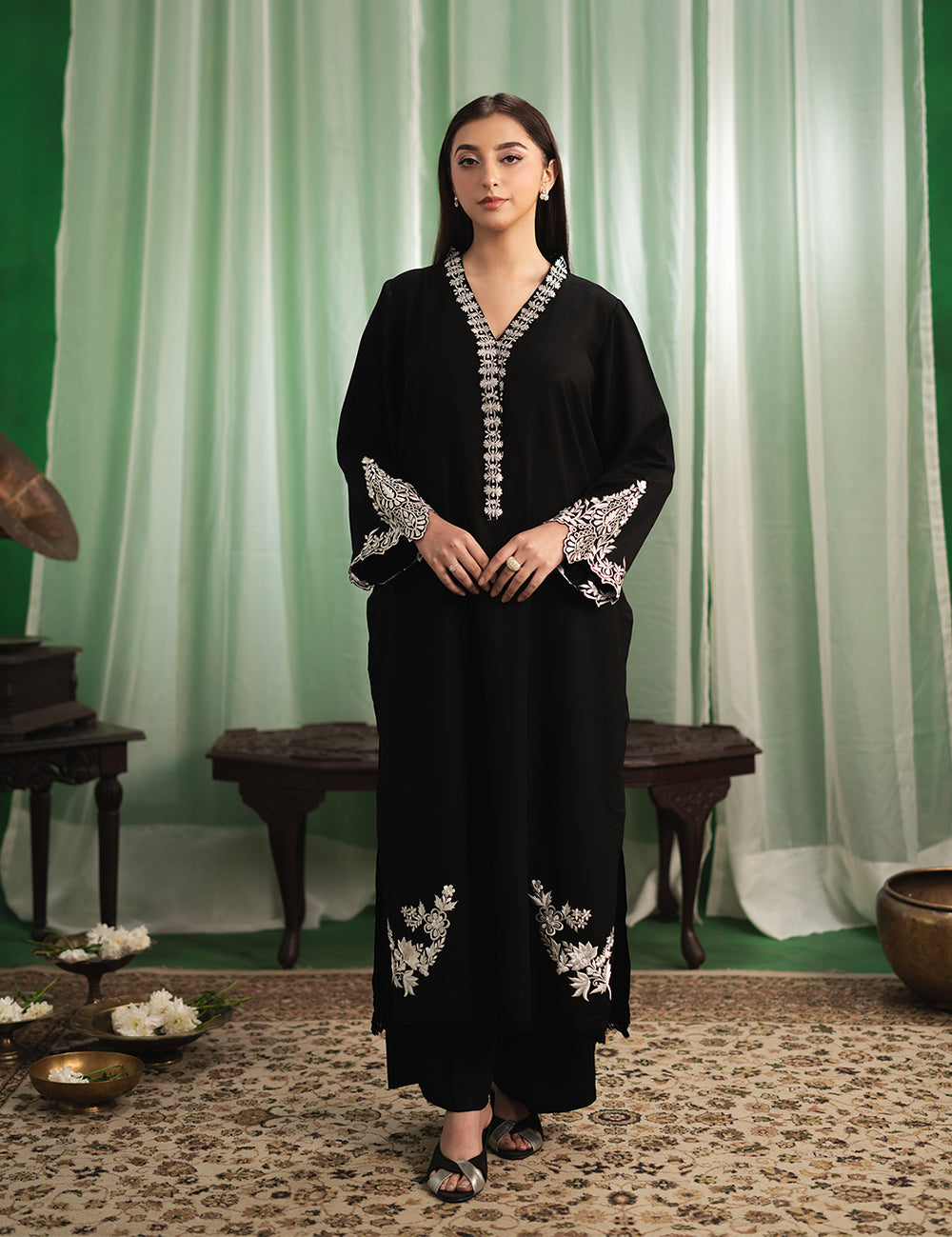 $90.00$90.00/Description: Where minimal meets refined — this black karandi set speaks volumes in subtlety. Designed for those who love simplicity with a side of effortless charm.Shirt: Karandi...