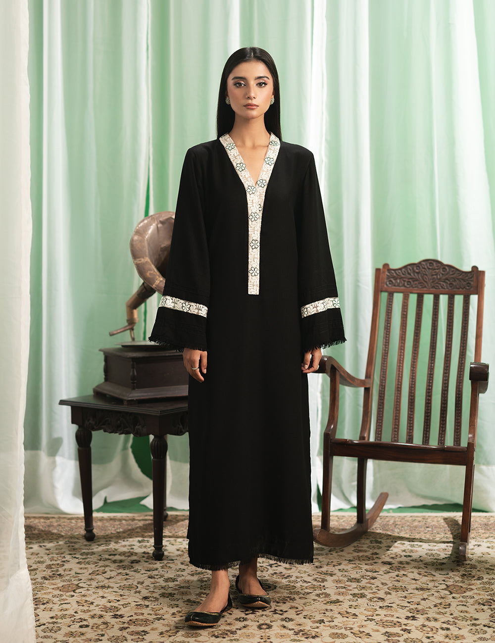 $90.00$90.00/Description: Tailored with finest karandi and uplifted with embroidery, this outfit reflects a refined rhythm — serene, structured, and poised.Shirt: Karandi Trouser: Karandi